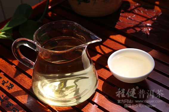 需要申明的是:“冷后浑”原是优质红茶的汤色评语,指“红茶汤浓,冷却后出现浅褐色或橙色乳状的浑汤现象。”但是,冷后变浑的现象,在云南大叶种晒青毛茶上常有表现,而且只出现在高档晒青毛茶的汤色里。