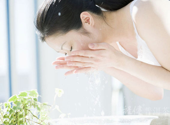茶汤洗脸:晚上洗脸后,泡一杯茶,把茶汤涂到脸上、轻轻拍脸,或者将蘸了茶汤的棉布附在脸上,再用清水洗。脸上的茶色经过一夜能够自然消除,能够去除色斑、美白皮肤。