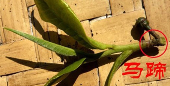 普洱茶马蹄脚产生的原因有两点,下面我们就一起来了解: 一、春季,经过一整个冬天的养分积累,茶树吸收的养分很充足,生长较好,加之春天水分充足,茶叶叶片生长的较快,鲜叶生长快速,而茶农来不及采摘,叶片就会长老,新叶旁边又会生发出另一枝叶,或是新的枝叶,会直接生长在主干之上。两者相交结的地方,就会产生类似马蹄脚的物质。最重要的原因是采摘的问题。 二、由于茶农采摘不当,很多时候,采摘茶叶时,不该是撇断,而应该是掐断。撇断的鲜叶,便会带有马蹄脚在叶梗处。