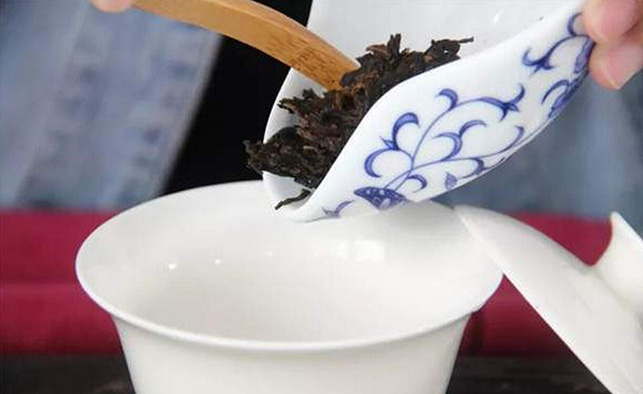 普洱茶生茶,通常按1:50的茶与水比例冲泡。7人以内喝茶,要使得茶汤适口,投茶量在7克左右为佳。而普洱茶熟茶,茶水比例1︰4冲泡0。普洱熟茶较耐泡,要想茶汤味浓可投茶10克,要是浓淡相宜投茶8克即可。盖碗常用的有中号盖碗和大号盖碗,材质多为瓷。中号盖碗容积为120—180ml,大号盖碗容积为250ml。普洱茶生茶常用盖碗冲泡。