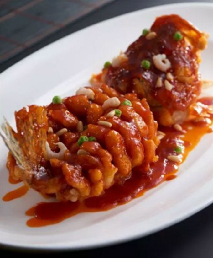 普洱清爽利口,桂鱼鲜嫩肥美,这简直是最佳的组合!将油炸过的桂鱼放入已经准备好的高汤中,在放入普洱茶汁、芦笋、粉条煮开,调味,将桂鱼摆放在上面,点缀后即可上桌。这道菜不仅美味醇香,还具有降脂、补气的功效,不过小编提醒,有哮喘、咯血的病人,寒湿盛者不宜食用哦,美味虽好,健康更重要哦~
