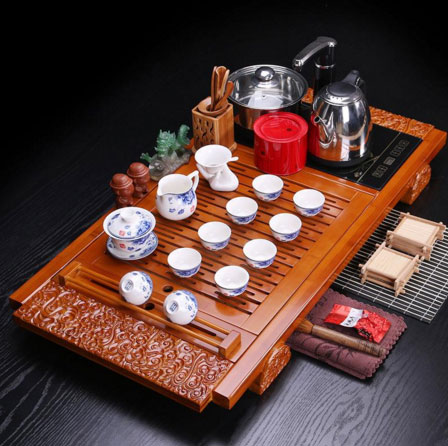 茶盘的作用就是可以将洗具、洗茶的水或泡茶时多余的茶水直接倒入,正因这样,你的整个茶桌看上去是湿湿的,所以就叫湿泡法。