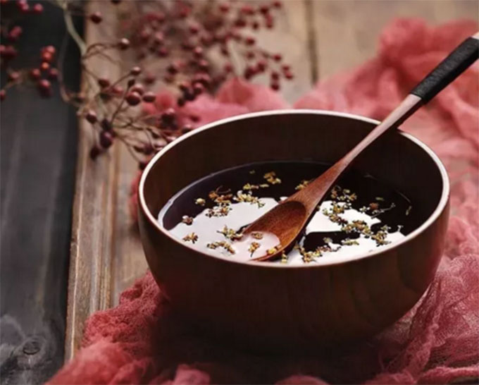 制作:先以文火煎煮荆芥、苏叶、生姜、茶叶,约15~20分钟后,加入红糖待溶化。