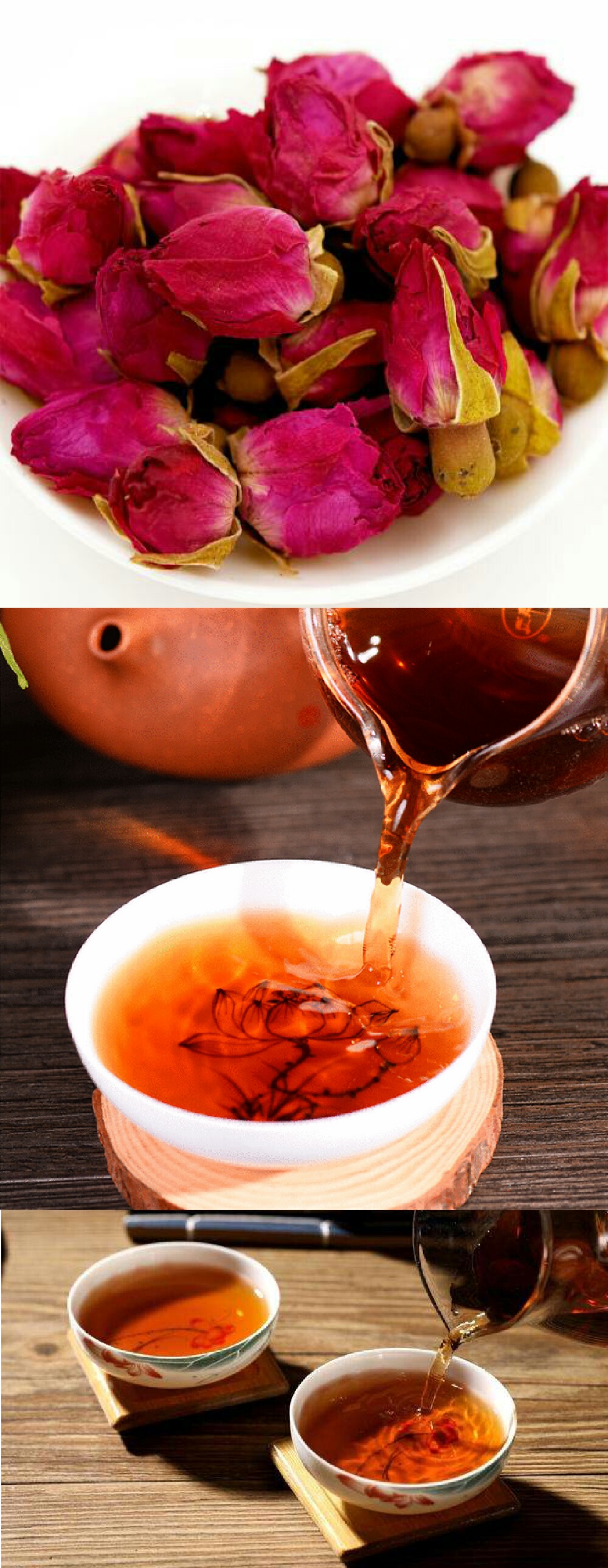 茶疗功效:玫瑰花具有理气的功效,能调节肝肾功能,行气活血,解郁提神,安神助眠,搭配普洱茶具有疏解胸闷的功效,适合夏日肝火旺盛、脾运不健者饮用。
