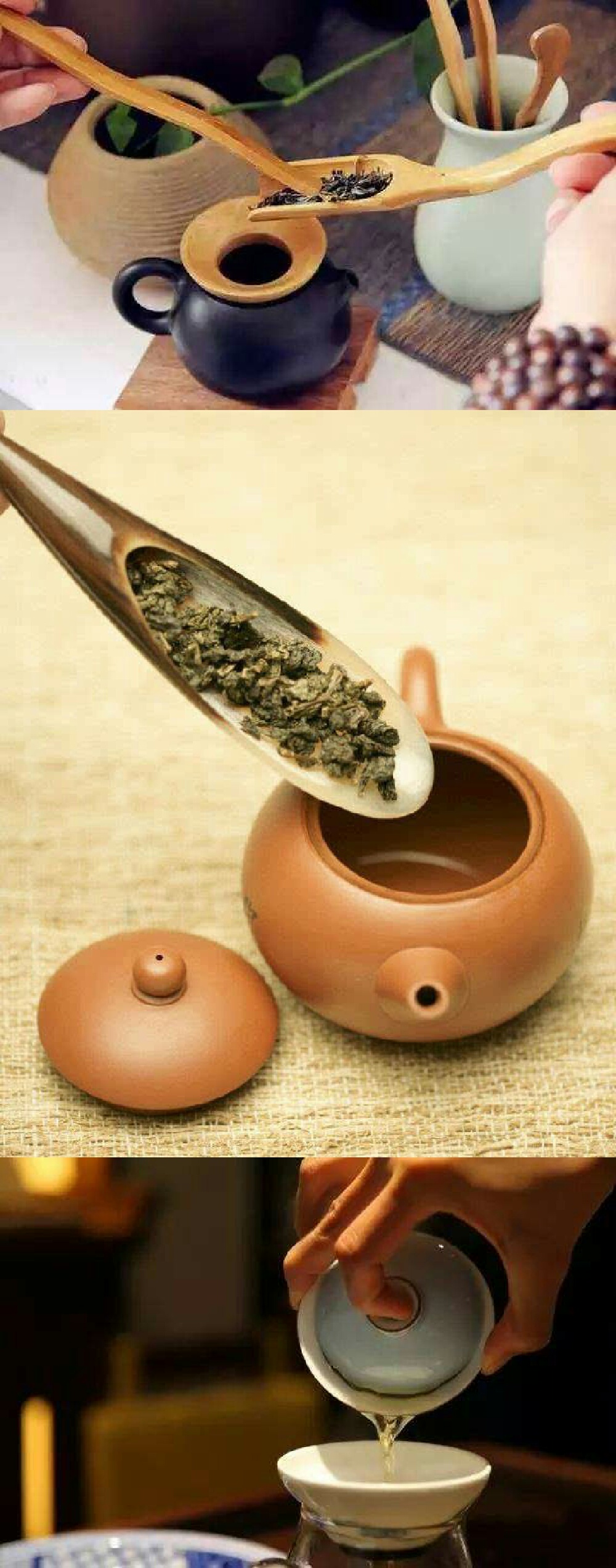 茶叶的冲泡有个常用茶水比例是1:50,也就是1克的茶叶,加50毫升的水(乌龙茶、紧压茶除外,会用到大概1:30的茶水比例),这样就可以估算出你大概要加多少干茶——比如说,你手上的壶能装400毫升的水,那么差不多放8克的茶叶是比较合适的。