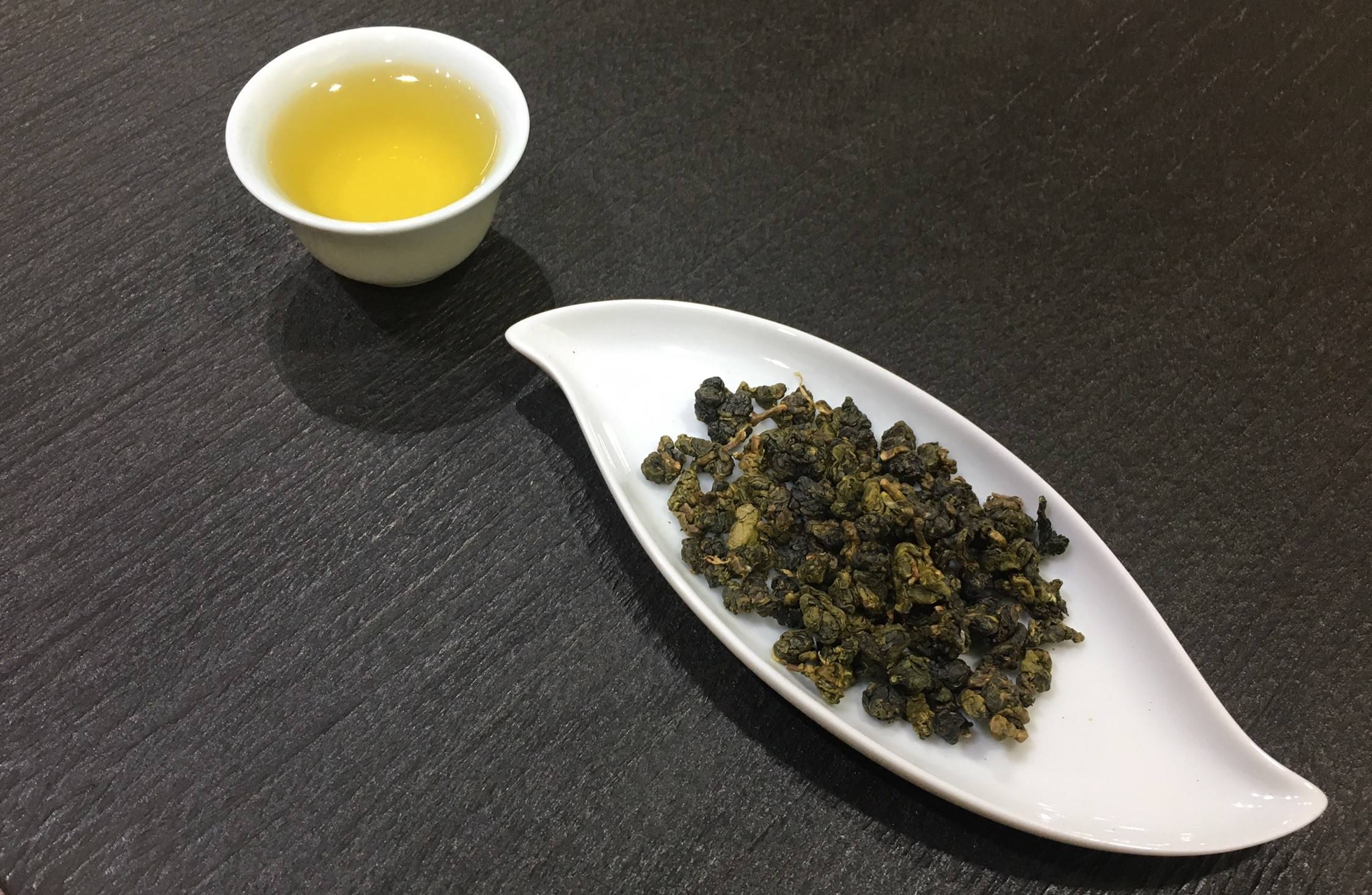 乌龙茶的种类、类别非常多,但还是可以按照外形大致分为条形乌龙和球形乌龙,条形乌龙的投茶量差不多占盖碗容量的1/5到1/3,球形乌龙则盖过盖碗底部就可以了。