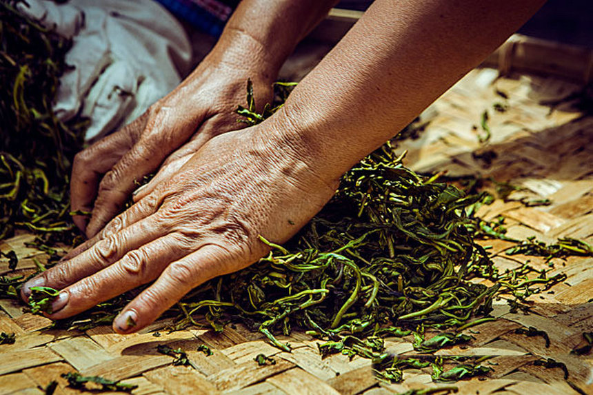 普洱茶成茶工艺原始古老,当地农民将茶叶摘采下来稍经低温翻炒软、揉搓后放太阳下晒干。正因为这种简单而不经意的加工方法使普洱茶中各种蛋白质和有机物理学中的活性酶被保存下来,在学术上称为“抑活”,而其它烘青、炒青等加工方法,学术上 则称为“灭活”。被“抑活”的这些有机物和活性酶又给普洱茶在陈放或渥堆、陈化和发酵的过程中提供了有机转化的物质基础。