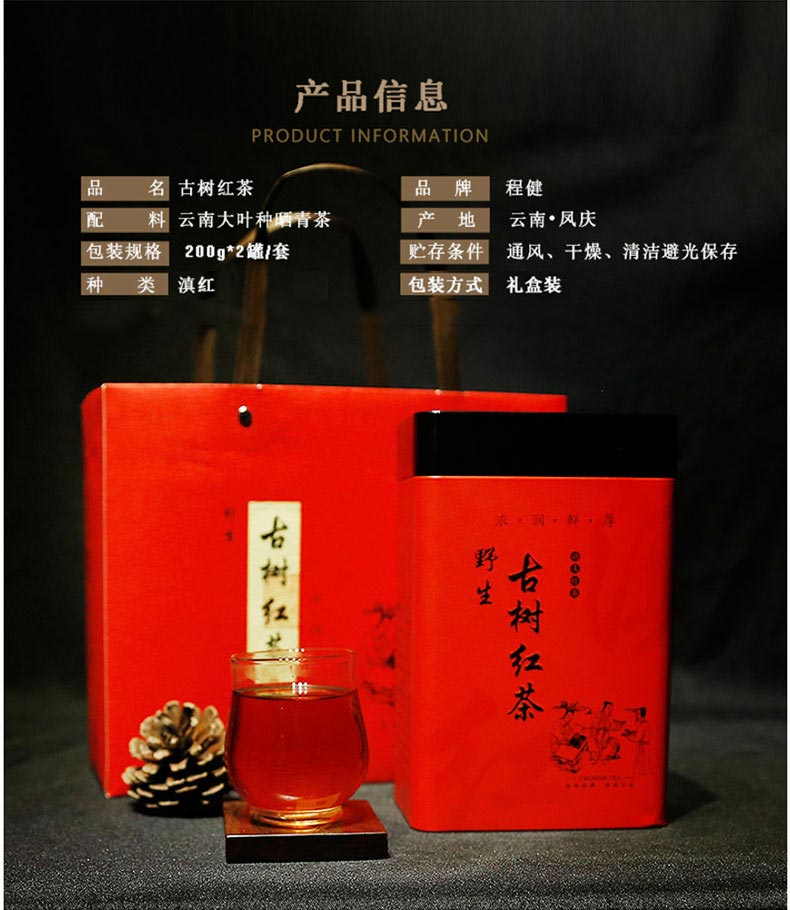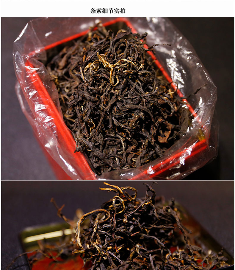 红茶的茶芽含量高,条形细紧(小叶种)或肥壮紧实(大叶种),色泽乌黑有油光,茶条上金色毫毛较多;香气甜香浓郁,滋味甜醇鲜爽,汤色红艳,碗壁与茶汤接触处有一圈金色的光圈,俗称“金圈”如果是中档红茶,嫩芽含量少,金圈就会欠黄亮。