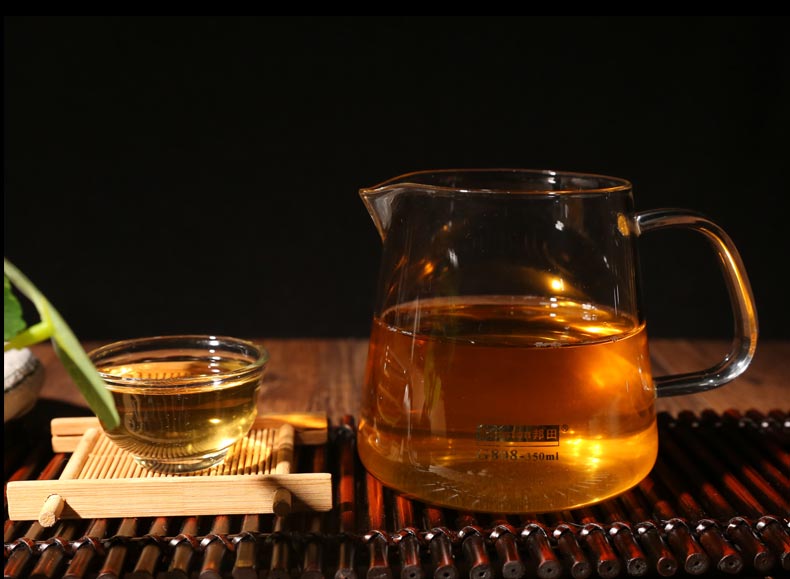 取茶头约5小块,具体看茶头大小,如有计量称就取7-10克,具体投茶量看个人饮茶习惯,可增减。稍碎的老茶头先投,块状后放,大块的在上面,容易与沸水接触,醒茶较快,汤色较好。