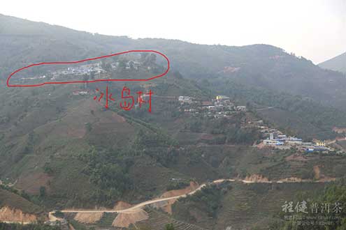 人们说的 冰岛茶指的就是冰岛(傣语:扁岛/丙岛,意思是用竹篱笆做寨门的地方)老寨的茶,而今天冰岛是一个行政村即冰岛村委会,下属5个自然村 :冰岛、南迫、坝歪、糯伍、地界。从冰岛老寨俯瞰可见山下的南勐河将勐库一分为二,勐库人将河两边的大山一边称东半山,一边称西半山。冰岛村委会所辖的坝歪、糯伍老寨,在南勐河东岸的山顶上,属于东半山;冰岛老寨、南迫、地界三个村在南勐河西岸,属邦马大雪山山脉,属于西半山。