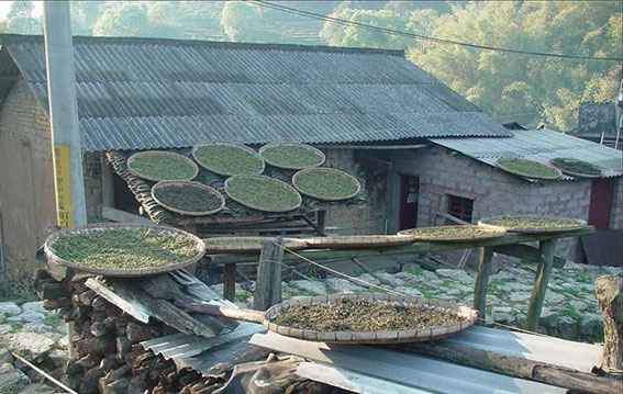 我们老家在云南临沧茶区这边,家里也有些茶地,小时候,每逢爸爸喝茶,妈妈总会拿出茶叶罐,然后用一个大号的茶壶泡满,再将茶汤倒进茶碗里。那茶罐、茶壶、茶碗至今我还记得。茶壶约有1000毫升的容量,灰白的颜色,有的时候去干活,也会带着去,虽然自家有茶地,但那时的普洱茶还没有现在这么出名,茶叶都是老爸平时里去茶地采摘回来后,用一块干净的塑料布垫,之后把茶叶倒在上面铺开晾一小个小时,之后把平时炒菜的炒锅洗干净后,用来炒茶,20多分钟后,倒出来,用手进行揉捻,之后拿到院子里晾晒,当时我还小,还不太明白为什么要这么做。现在想想,这个步骤就是大概制作普洱茶毛茶的过程了。