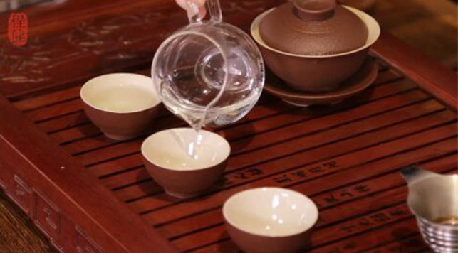 2.温壶涤具:茶具中置入烧开的清水,主要起到温壶温杯的作用同时可以涤具。