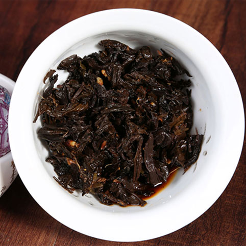 干仓的普洱生茶叶底呈栗色至深栗色,和台湾的东方美人茶叶底颜色很相似。叶条质地饱满柔软,充满新鲜感。普洱熟茶的叶底多半呈现暗栗或黑色,叶条质地干瘦老硬。如果是发酵较重的,会有明显炭化,像被烈火烧烤过。有些较老的叶子,叶面破裂,叶脉一根根分离,有如将干叶子长期泡在水中那种碎烂的样子。但是,有些熟茶若渥堆时间不长,发酵程度不重,叶底也会非常接近生茶叶底。反之,也有些生茶在制作程序中,譬如茶菁揉捻后,无法立即干燥,延误了较长时间,叶底也会呈现深褐色,汤色也会比较浓而暗,跟只是轻度发酵汇堆过的熟茶是一样的。