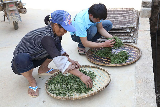 依古法,优秀的制茶师傅用铁锅手工杀青,对杀青的温度和时间把握的炉火纯青。因大叶种含水量高,杀青时必须闷抖结合,使茶叶失水均匀,高温快速钝化酶活性,制止多酚氧化。可以更好地保持茶叶内的营养物质,促进茶叶后期良好香气的形成。