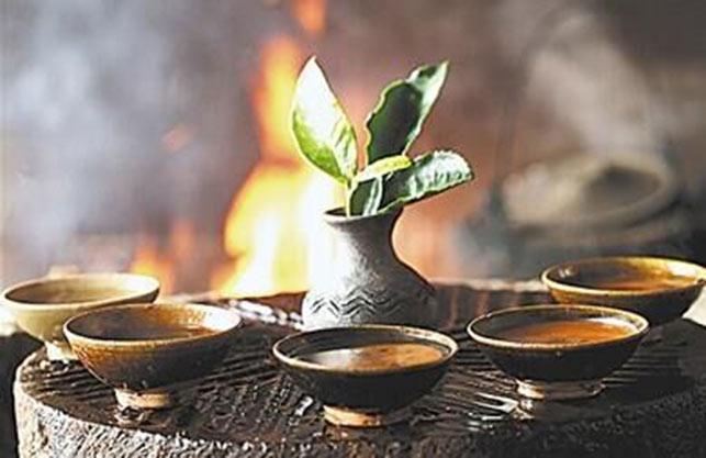 在少数民族文化中,茶少了些雅致趣味,多了强身健体的实用性。粗陶烤茶,大碗喝茶,盐、姜、花椒等统统可以入茶。茶,对粗犷的少数民族来说,仿佛一位可以托付现实人生的挚友,早出晚归,小病大痛,在大自然中求生存的每一天都少不了它。