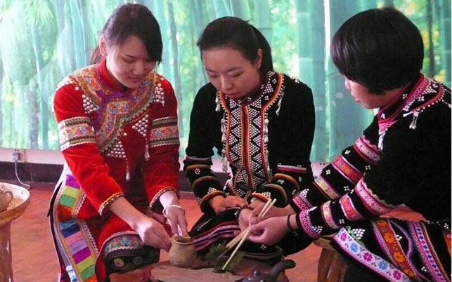 彝族人还流传着百灵从无量山百丈高崖衔来茶种为人治百病的故事,为纪念灵鸟,客人饮茶时,少男少女总会模仿灵鸟翩翩起舞,而糊米罐罐香茶的每道工序也和百灵有关。